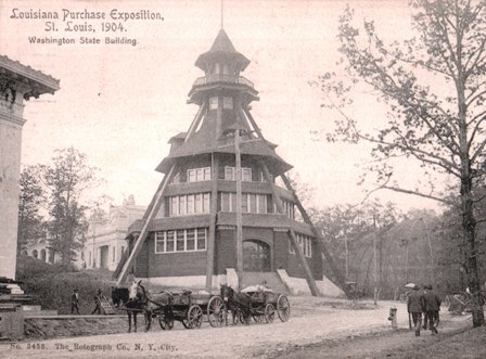 It is worth noting that Washington State had been involved in world's fairs for a long time - nearly twenty-five years or longer - and had produced significant buildings for several fairs. At the Chicago (1893) and St. Louis (1904) fairs, these took the form of elaborate and novel structures that showed off the large timber of the region: